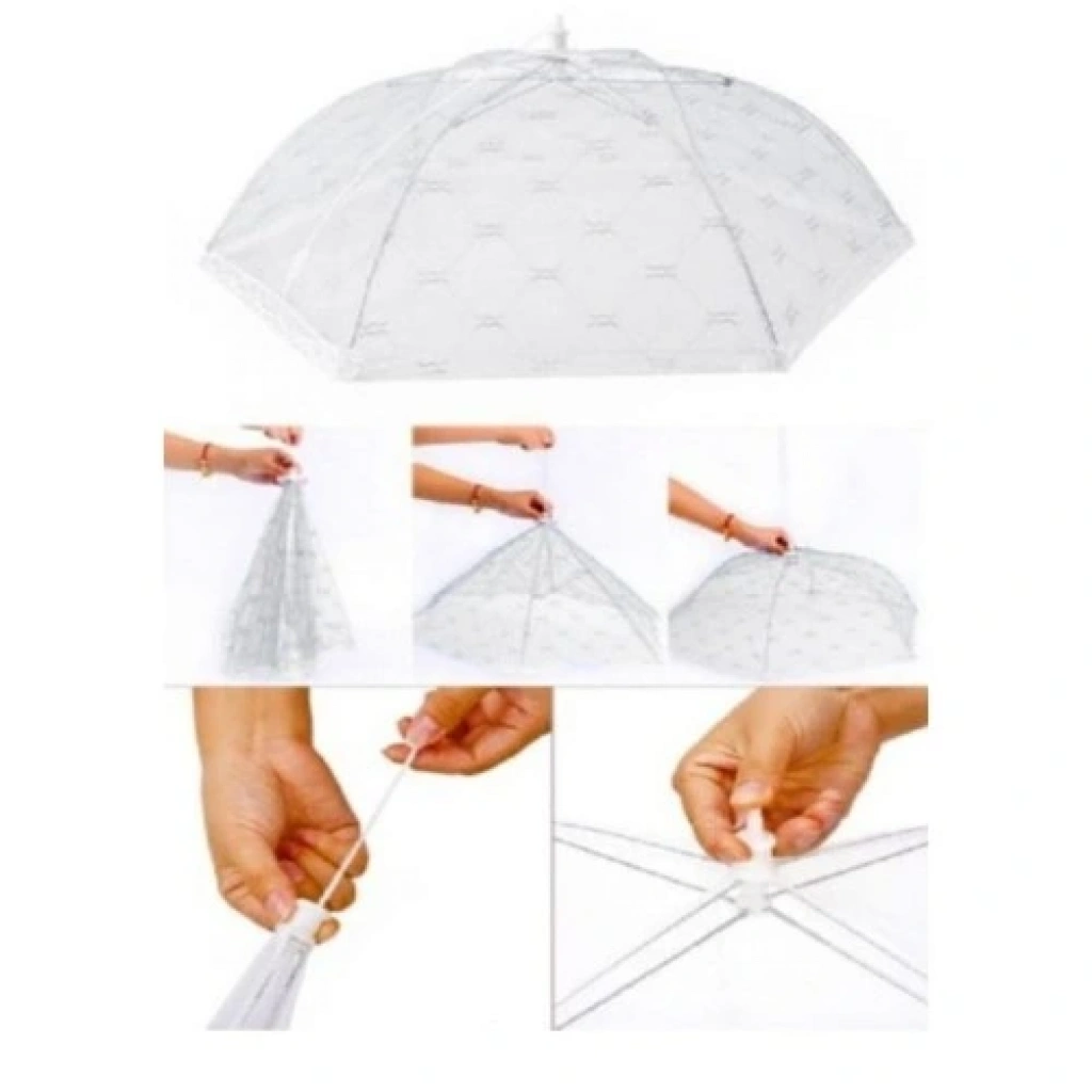 Büyük Boy Yemek Koruma Şemsiyesi (60x60x25 cm) - Katlanabilir Pratik Kapak ve SineklikAçık havada veya mutfakta yiyeceklerinizi sinek, böcek ve toz gibi dış etkenlerden korumanın en pratik ve hijyenik yolu! Yemek Koruma Şemsiyesi, geniş boyutları sayesinde büyük servis tabaklarını ve birden fazla yiyeceği aynı anda örtmek için idealdir. Piknikler, mangal partileri, açık büfeler ve mutfak tezgahları için vazgeçilmez bir üründür.Ürünün Temel Özellikleri:Büyük Boyutlar: Açık halde Boy 60 cm x En 60 cm x Yükseklik 25 cm ölçüleriyle, standart yemek koruma kapaklarından daha büyük bir alana sahiptir, böylece büyük salata kaseleri veya tepsileri rahatlıkla kaplar.Pratik Kullanım: Mekanizması sayesinde tıpkı bir şemsiye gibi kolayca açılıp kapanabilir. Kullanımı bittiğinde hızlıca toplanır.Yer Tasarrufu: Kapalı halde sadece 40 cm uzunluğunda olup, mutfak çekmecelerinde veya piknik sepetinde minimum yer kaplar, taşıması son derece kolaydır.Etkili Koruma: İnce, sık dokunmuş tül veya file yapısı sayesinde hava akışını engellemeden yiyeceklerinizi toz ve istenmeyen haşerelerden korur.Çok Amaçlı: Açık hava yemekleri, barbekü (mangal) etkinlikleri, mutfak hazırlıkları ve meyveliklerin üzerini örtmek için idealdir.Yaz aylarında ve açık alanda yemeklerin hijyenini sağlamak için bu pratik katlanabilir yemek sinekliğini hemen sepetinize ekleyin!