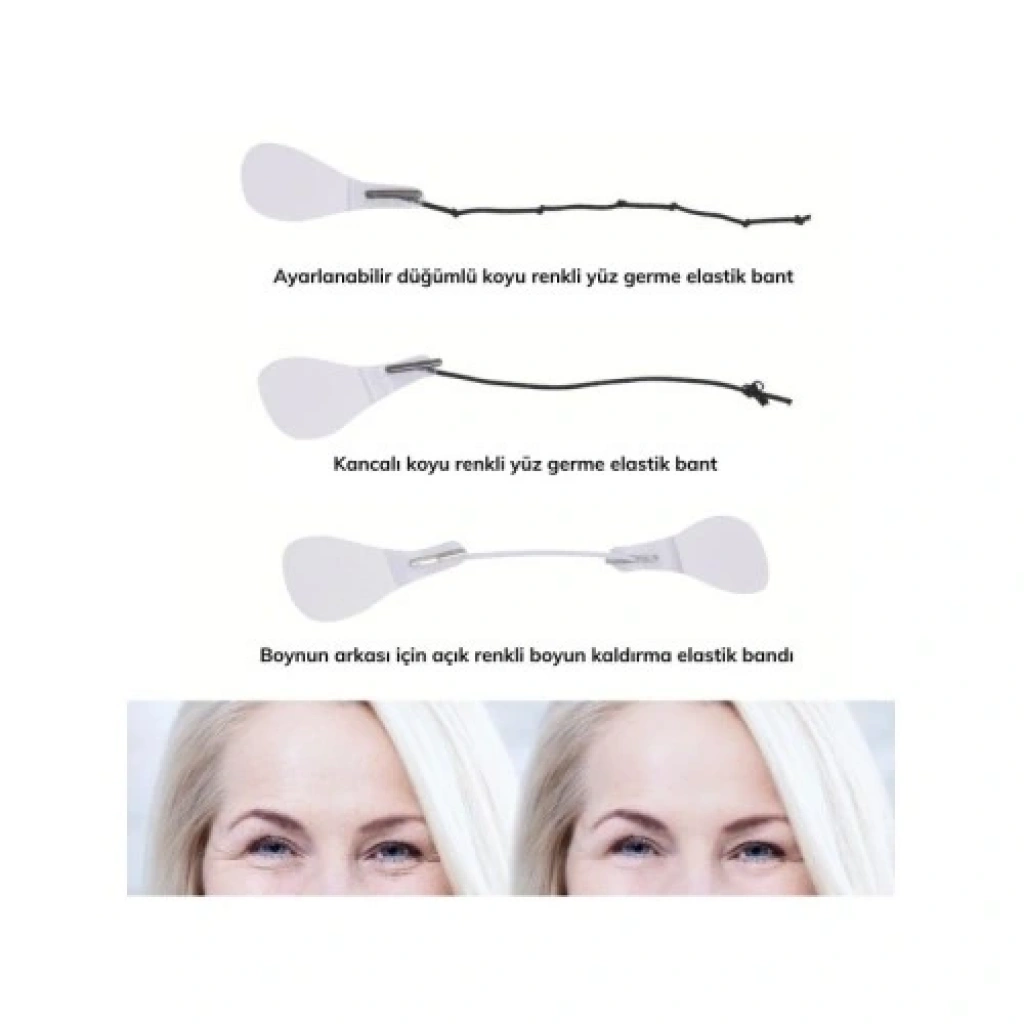 Lastikli Yüz Kaş Göz Boyun Gerdirme Bantları (40 Adet)Ürün Özellikleri:V Şekilli Bir Yüz için: Yüz germe pedleri, iyi esnekliğe sahip su geçirmezdir ve cildinizi rahatsız etmez. V şeklinde bir yüz oluşturmak için cildinizi kaldırabilir ve sıkılaştırabilir.Yumuşak ve Rahat: 40 adet hipoalerjenik yüz germe bantları vardır ve bunlar çevre dostu silikon kauçuk malzemelerden yapılmıştır, kullanımı güvenlidir, sağlıklı, yumuşak ve rahattır.Mükemmel Yüz Germe: Yüz ve boyun germe seti, gevşek cildi iyileştirir ve yüz, boyun, çene ve göz bölgesindeki kırışıklıkları ortadan kaldırır.Daha Genç Olun: Yüz germe bandı, sarkan yüz kaslarını germeye yardımcı ve yüzünüzü şekillendirmeye yardımcıdır. İlk kullanımla beraber daha genç görünecek ve harika hissedeceksiniz.Geniş Uygulamalar: Yüz germe bandı özel günler, düğünler, toplantılar, modellik, fotoğraf çekimi, seyahat vb. için idealdir. İnce, sıkı ve güzel bir yüzün şekillendirilmesine yardımcı olur.Malzeme: Silikon,kauçukRenk: şeffafPaket İçeriği:40 adet Yüz Germe Bandı ve Kademeli Uygulama Lastikleri
